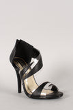 Get a lovely look with this stunning heel ! Featuring open toe, leatherette upper with clear lucite trim, stitching detail, and stiletto heel. Finished with lightly padded insole and rear zipper closure for easy on/off.