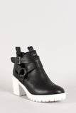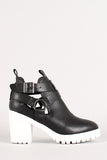 Wild Diva Lounge Buckle Cut Out Round Toe Bootie