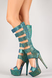 Anne Michelle Iridescent Strappy Open Toe Knee High Heel