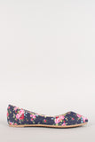 This fabulous ballet  floral  print denim upper, almond toe, scooped vamp, lightly padded insole, and easy slip on style.