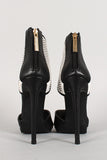 Featuring pointy toe, perforated ankle cuff design, indent platform, and stiletto heel. Finished with lightly padded insole and rear zipper closure for easy on/off.