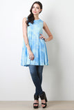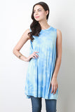 Shift top featuring soft lightweight knit fabric, tie dye design, round neckline, and stitching detail. Accessories sold separately. 95% Rayon, 5% Spandex.