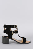 Qupid Nubuck Buckle Strappy Open Toe Heel