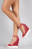Bamboo Neon Mesh Lug Sole Platform Wedge