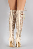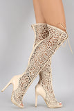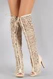 Strappy Woven Lace Up Peep Toe Stiletto Thigh High Boot