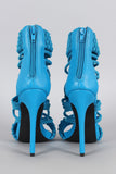 This beautiful heel features a strappy crochet design upper, an open toe silhouette, and wrapped stiletto heel. Finished with lightly padded insole and rear zipper closure for easy on/off.