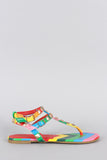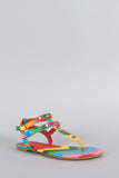 This rainbow t-strap gladiator style inspired, featuring a slingback strap and and two adjustable ankle straps. Finished with studded pyramids along the vamp.