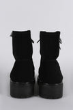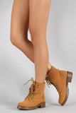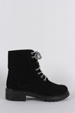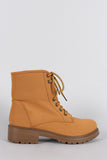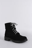Bamboo Shearling Cuff Round Toe Lace Up Combat Work Ankle Boots