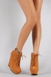Bamboo Oxford Round Toe Lace Up Platform Wedge Booties