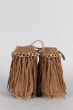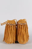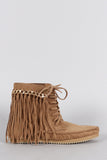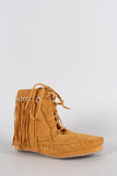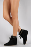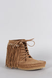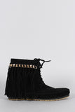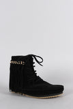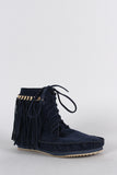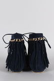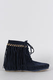 Bamboo Suede Link Chain Fringe Lace Up Moccasin Flat Booties