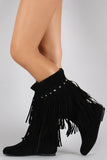 Suede Studded Layered Fringe Round Toe Knee High Boot