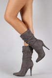 Anne Michelle Suede Slouchy Pointy Toe Mid Calf Boots