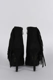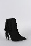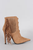 Suede Perforated Fringe Pointy Toe Stiletto Booties