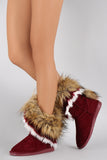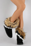 Asymmetrical Fur Collar Suede Round Toe Flat Boots