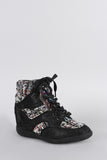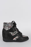 Bamboo Glitter Tweed High Top Lace Up Wedge Sneakers