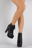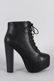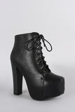 Vegan Leather Platform Chunky Heel Lace Up Booties