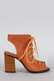 Corset Lace Up Peep Toe Mule Chunky Heel