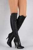 Anne Michelle Quilted Lycra Pointy Toe Stiletto Boots