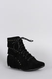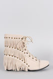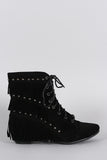 Suede Studded Fringe Lace Up Hidden Wedge Booties