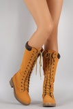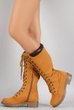 These  boots  feature a round toe silhouette, lace up front, lug sole, and block heel. Finished with padded collar, faux fur interior lining, and partial side zipper closure for easy on/off.