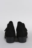 Qupid Perforated Suede Buckled Cutout Cowgirl Ankle Boots