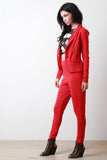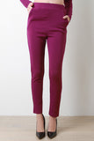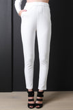 These tapered pants feature a stretchy crepe texture fabric, elastic waistband, and side pockets. Accessories sold separately. 97% Polyester, 3% Elastane.