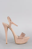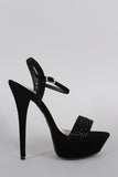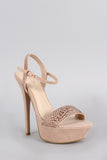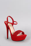 Anne Michelle Rhinestone Suede Ankle Strap Platform Heel