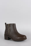 • Zipper Trim Quilted Round Toe Ankle Boots