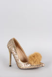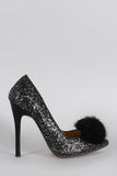 Pom Glitter Encrusted Pointy Toe Stiletto Pump