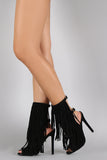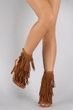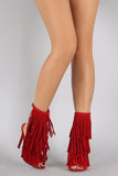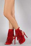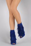 Liliana Long Layered Fringe Peep Toe Stiletto Mule