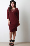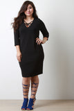 Crisscross V-Neck Quarter Sleeves Midi Dress