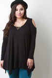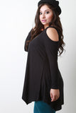 Long Sleeve Cold Shoulder Handkerchief Top