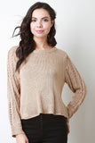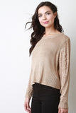 Perfect for winter top ! Features double weft knit fabrication on the sleeves, round ribbed neckline, and a crossover back hemline. Accessories sold separately. 100% Acrylic.