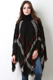 This knitted poncho top features a large turtle neckline, poncho cut fit, asymmetrical hemline, and plaid design. Accessory sold separately. 60% Cotton, 40% Polyester.
