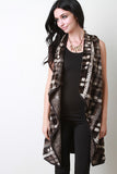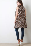 This beautiful but cozy vest features a plaid, very soft to the touch short fur knit fabrication. Along with no sleeves, considered longline in length, and has a marled knit fabrication with no fur on the inside section of the vest. Lined with a solid color around the borders. Accessories sold separately. Made in U.S.A. 92% Polyester, 8% Spandex.