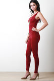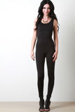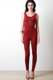 This body sculpturing leotard jumpsuit features a round neckline, sleeveless construction, and taper cut legs. Accessories sold separately. Made in U.S.A. 92% Polyester, 8% Spandex.