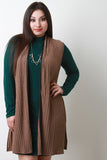 Marled Ribbed Knit Open Front Sleeveless Vest