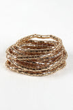 A set of ten elastic tube chain bracelets in glossy enamel. Lead and nickel compliant.