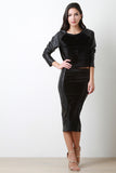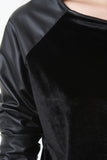 Velvet And Vegan Leather Raglan Crop Top
