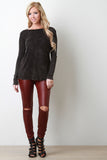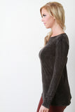 A relaxed fit top featuring soft acid wash jersey, a round neckline, and fitted long sleeves. Accessories sold separately. Made in U.S.A. 100% Rayon.
