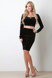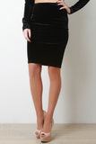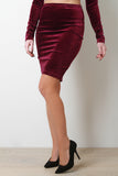 This  skirt  features soft velvet, pencil cut, and back zipper closure. Accessories sold separately. 95% Polyester, 5% Spandex.