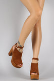 Suede Ankle Buckle Faux Wood Open Toe Heel