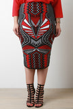 Thick Knit Mixed Pattern Print Pencil Skirt