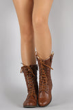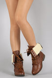 • Faux Shearling Cuff Quilted Combat Lace Up Boots