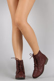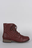 Quilted Round Toe Lace Up Combat Ankle Boots