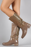 Crocodile Back Zipper Strap Mid Calf Rain Boots