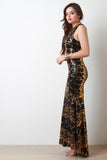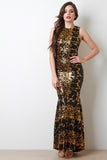 Two-Tone Floral Sequins Mermaid Maxi Dress