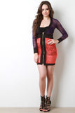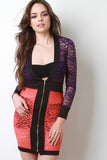 Two-Tone Floral Lace Deep V-Neck Bodycon Dress