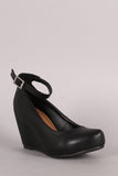 Bamboo Round Toe Ankle Strap Hidden Platform Wedge