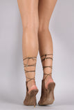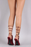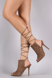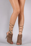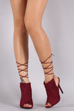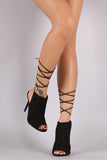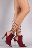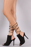 Wild Diva Lounge Suede Peep Toe Ankle Tie Mule Heel
